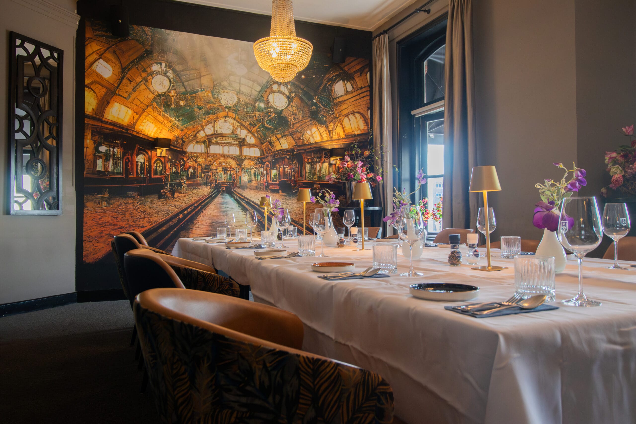 Wil je in absolute exclusiviteit genieten met je dierbaren of een krachtige zakelijke bijeenkomst organiseren? Ontdek onze stationkamers, gelegen op de eerste verdieping, waar luxe en comfort samenkomen in een stijlvolle ambiance.Of je nu op zoek bent naar de ideale plek voor vergaderingen, gezellige lunches of gastronomische diners, onze stationkamers zijn ontworpen om aan al je wensen te voldoen. Ze bieden ruimte voor 2 tot 30 gasten en zijn uitgerust met geavanceerde tv-schermen voor indrukwekkende presentaties.